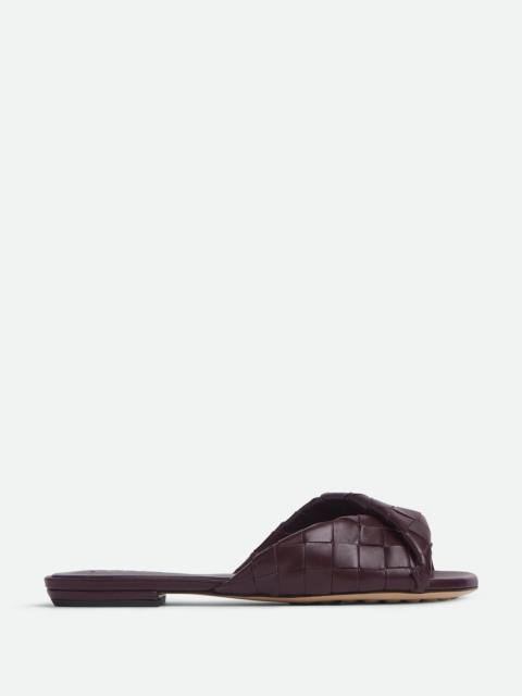 Flat mule with a folded detail in Intrecciato leather. Product Details - Intrecciato leather flat mule sandal - Folded detail - Material: Lambskin - Unlined - Color: Pinecone - Rubber-injected leather outsole - Made in: Italy - Product code: 806918V2ED02354