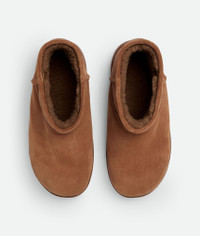 Mini ankle boot realised in suede with shearling lining and an ultra lightweight Product Details - Suede with shearling mini ankle boot - Material: calfskin - Lining: Shearling Lambskin - Color: Caramel - Ultra-lightweight rubber outsole - Flatform: 3.5 cm | 1.4” - Made in: Italy - Product code: 810717V1NY17665