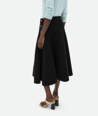 A-line skirt in wool boucle. Product Details - Wool boucle A-line skirt - Metal knot buttons closure - Material: 49% cotton, 41% wool, 9% polyamide, 1% elastane - Color: Black - Made in: Italy - Product code: 812471V4WQ01000 Size & Fit - Model is 181 cm | 5'11" and is wearing a Bottega Veneta size S