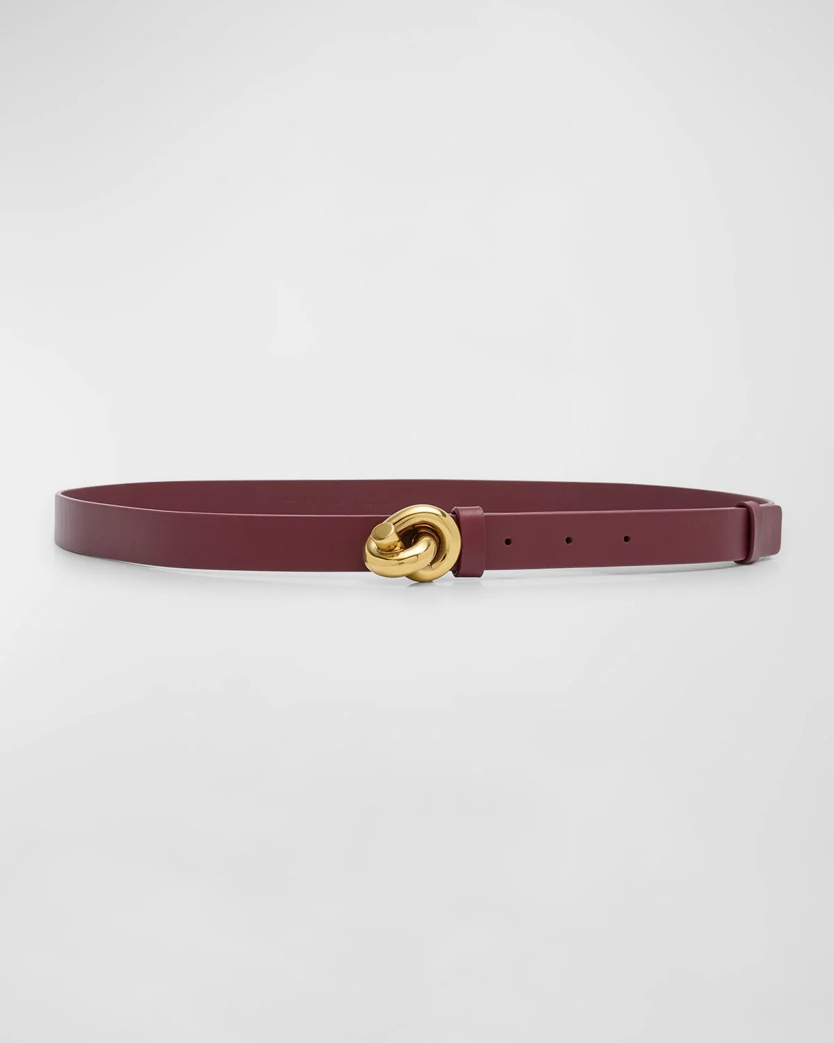 Bottega Veneta skinny belt in leather and brass Knot buckle Pin closure Made in Italy