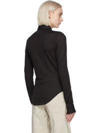 Long sleeve viscose shirt in brown. Spread collar. Button closure at front. Single-button barrel cuffs. Tonal hardware. Supplier color: Fondant Body: 100% viscose. Trim: 100% cotton. Made in Italy 211798F109001