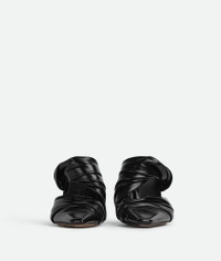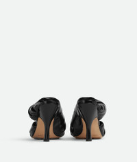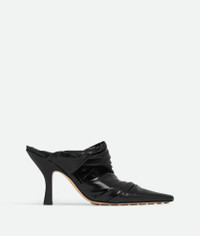 Mule with draped leather effect realised in shiny calfskin with a bio-based rubber Product details • Draped leather mule Material: 100% Calfskin • Lining: Calfskin • Color: Black • Bio-based rubber-injected and biodegradable leather outsole • Heel: 9 cm | 3.5" Made in: Italy