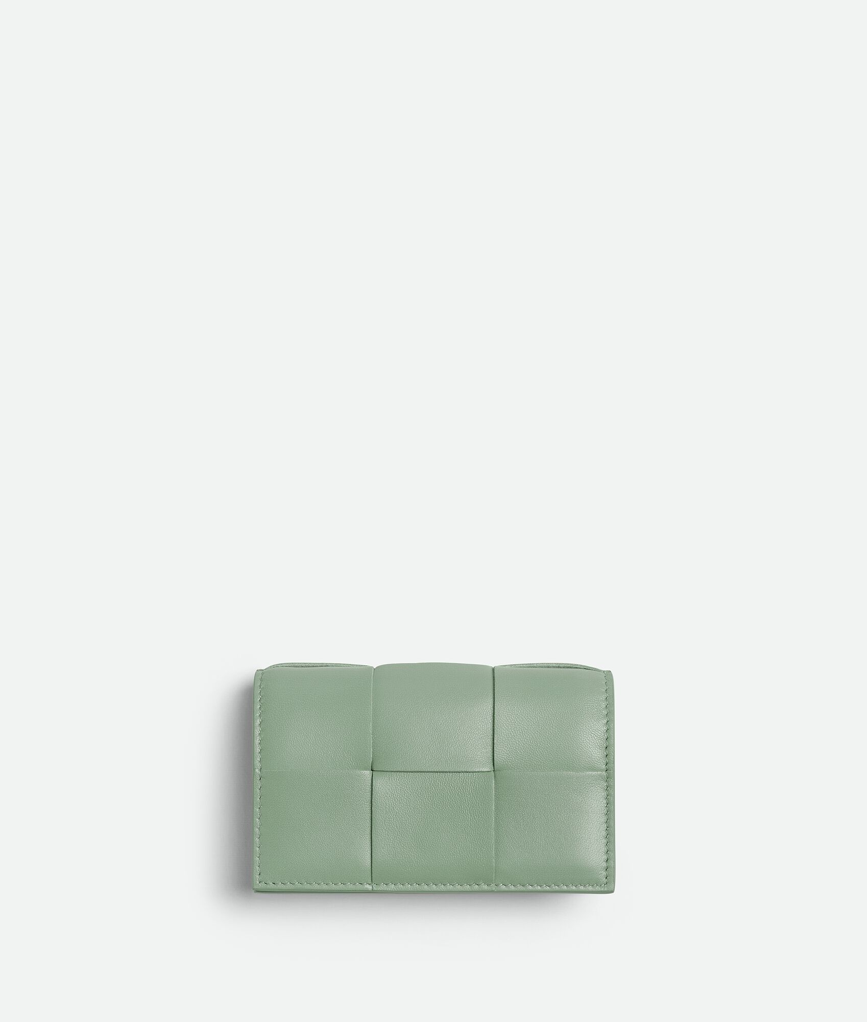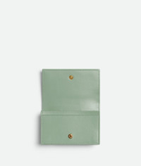 Intrecciato leather card holder. Product details • Intrecciato leather card holder • One compartment, one card slot • Press stud closure Material: 100% Lambskin • Lining: Calfskin • Color: Thunder • Hardware: Gold finish • Height: 7.5 cm • Width: 12.2 cm • Depth: 2.5 cm Made in: Italy