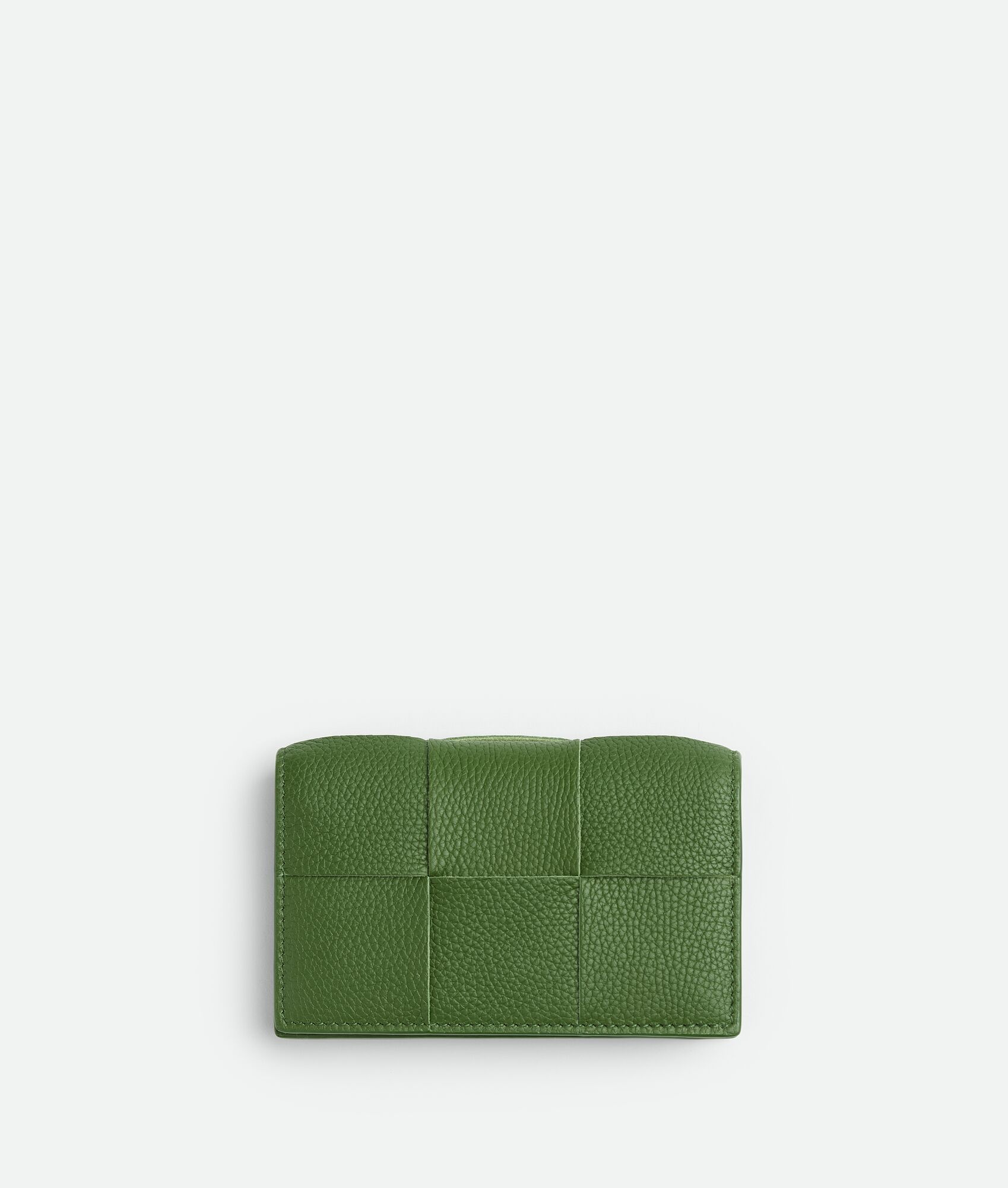 • Intreccio grained leather card case • One compartment, one card slot • Press stud closure Material: 100% Calfskin • Lining: Calfskin • Color: Avocado • Hardware: Gold finish • Height: 7.5 cm | 3" • Width: 12.2 cm | 4.8" • Depth: 2.5 cm | 1" Made in: Italy