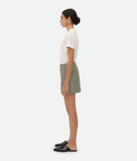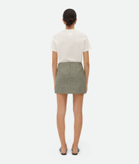 Mini skirt in structured double melange cotton. Product Details - Structured double melange cotton blend mini skirt - Zipper closure - Material: 35% cotton, 35% viscose, 25% wool, 5% polyamide - Color: Green/Fennel/White - Made in: Italy - Product code: 813032VKPH04008 Size & Fit - Model is 176 cm | 5'9" and is wearing a Bottega Veneta size 38