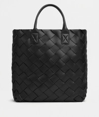 • Large intreccio leather tote bag • Single detachable interior zipped pocket with exterior card slots Material: 100% Lambskin • Lining: Bonded lambskin • Color: Black • Hardware: Silver finish • Height: 62 cm | 13.9" • Width: 41 cm | 13.3" • Depth: 17 cm | 6.2" • Handle Drop: 19 cm | 8.6" Made in: Italy