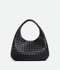 Shoulder bag with archival silhouette in supple Intrecciato leather with tie closure. Product Details - Intrecciato leather shoulder bag - Leather tie closure with hidden magnet - Lining: Unlined - Color: Black - Hardware: Brass finish - Made in: Italy - Product code: 844249V4SC01019 Material - Material: Lambskin Size & Fit - Height: 20 cm | 7.9" - Width: 33 cm | 13" - Depth: 16.5 cm | 6.5" - Handle drop: 20 cm | 7.9"