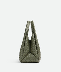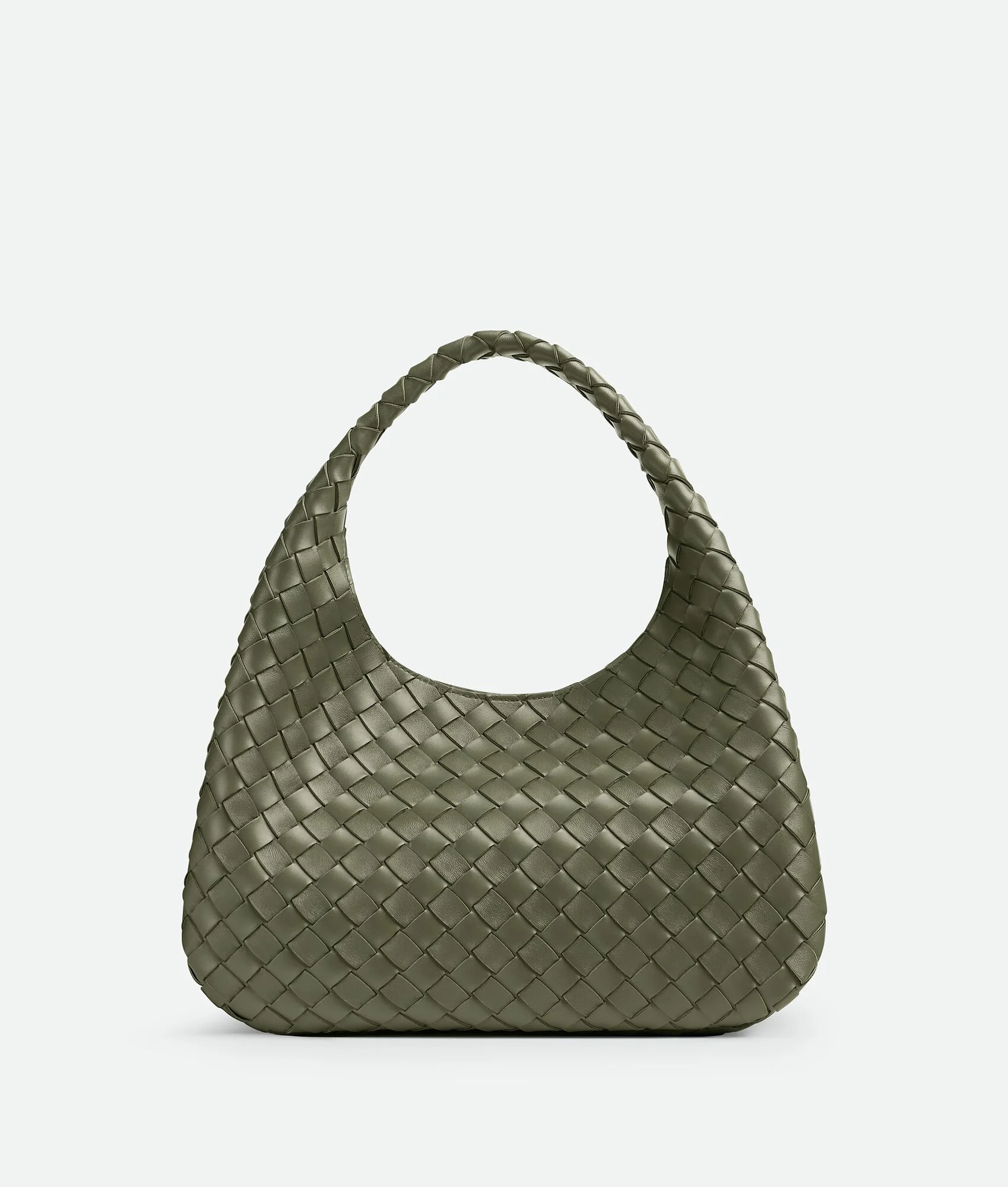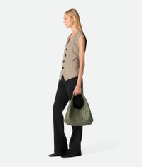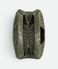 Shoulder bag with archival silhouette in supple Intrecciato leather with tie closure. Product Details - Intrecciato leather shoulder bag - Leather tie closure with hidden magnet - Lining: Lambskin bonded Intrecciato - Color: Pickle - Hardware: Brass finish - Made in: Italy - Product code: 844249V4SC03293 Material - Material: Lambskin Size & Fit - Height: 20 cm (7.9") -Width: 33 cm (13.0") -Depth: 16.5 cm (6.5") -Handle drop: 20 cm (7.9")