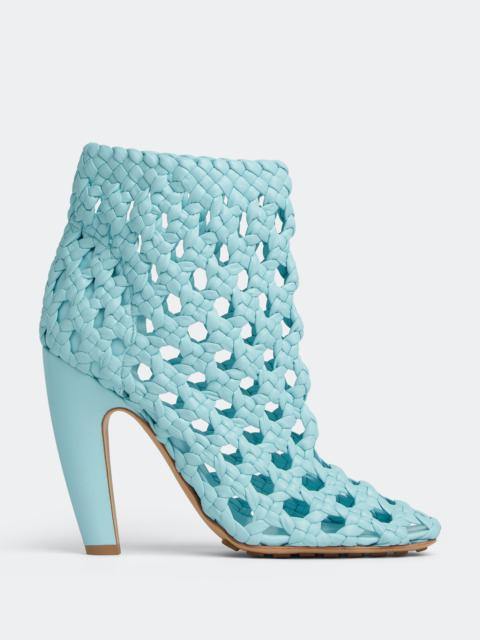 Open weave leather ankle boots. Product details • Open weave leather ankle boots Material: 100% Lambskin • Unlined • Color: Pale Blue • Rubber-injected leather outsole • Heel: 10 cm | 3.9" Made in: Italy