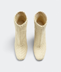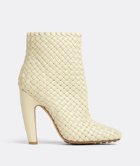 Padded intreccio ankle boots. Product Details - Padded intreccio ankle boots - Material: lambskin - Unlined - Color: Butter - Rubber-injected leather outsole - Heel: 10 cm | 3.9" - Made in: Italy - Product code: 716171V2EH09311
