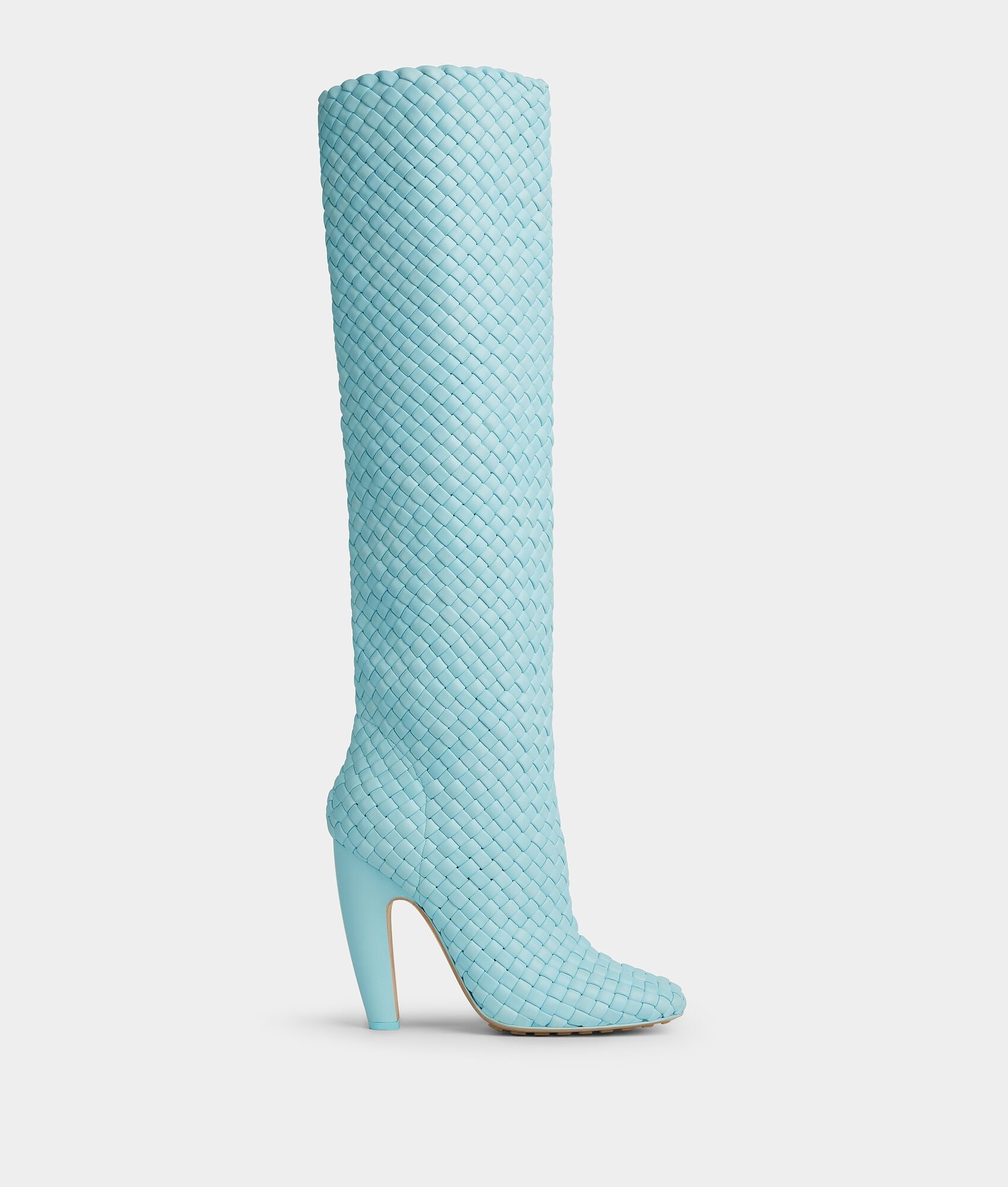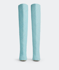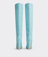 • Padded intreccio high boots Material: 100% Lambskin • Unlined • Color: Pale Blue • Rubber-injected leather outsole • Heel: 10 cm | 3.9" Made in: Italy