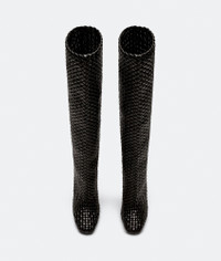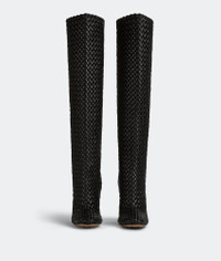 Padded intreccio high boots. Product details • Padded intreccio high boots Material: 100% Lambskin • Unlined • Color: Black • Rubber-injected leather outsole • Heel: 10 cm | 3.9" Made in: Italy