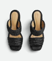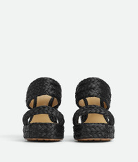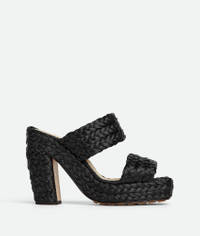 Braided raffia sandals. Product details • Braided raffia sandals Material: 100% Viscose • Lining: Lambskin • Color: Black • Bio-based rubber-injected and biodegradable leather outsole • Heel: 12 cm | 4.7" • Platform: 3 cm | 1.2" Made in: Italy