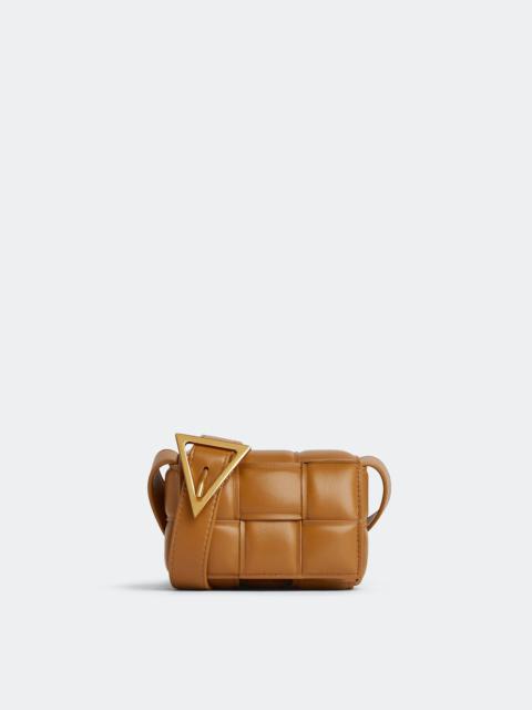 • Mini padded intreccio leather cross-body bag • Single interior card slot • Metal closure Material: 100% Lambskin • Lining: Bonded lambskin • Color: Camel • Hardware: Gold finish • Height: 8 cm | 3.1" • Width: 12 cm | 4.7" • Depth: 4 cm | 1.6" • Strap drop: 50 cm | 19.7" Made in: Italy