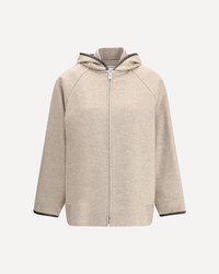 Bottega Veneta's wool Jacket is a garment that combines essential elegance with fine details. The hooded design is embellished with leather piping that enhances the structure, while the elasticized hem ensures a comfortable and modern fit. A sophisticated mix of functionality and style, signed by a maison with a contemporary spirit. DETAILS - Sku: 834986V3OO0_2783 - Season: AW25 - Fit: Regular - Composition: GENERAL 84% Wool 13% Polyamide 3% Elastane - MADE IN ITALY