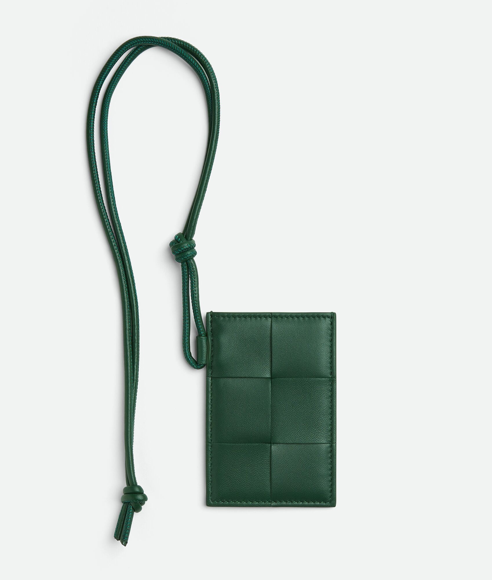 • Intreccio leather badge holder • One card compartment • Leather lanyard Material: 50% Lambskin, 50% Calfskin • Lining: Calfskin • Color: Raintree • Hardware: Gold finish • Height: 10.5 cm | 4.1" • Width: 7 cm | 2.8" • Depth: 0.5 cm | 0.2" • Strap drop: 45 cm | 17.7" Made in: Italy