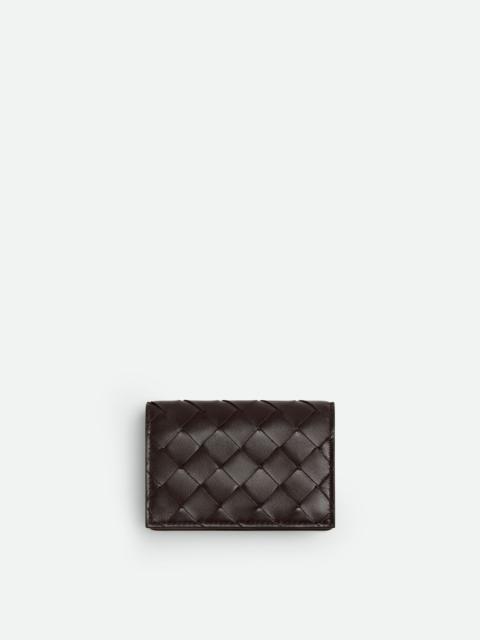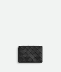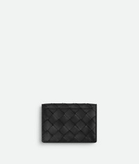 Intrecciato nappa leather business card case. Product Details - One compartment, one card slot, one back pocket - Press stud closure - Material: Lambskin - Lining: Calfskin - Color: Black - Hardware: Gold finish - Height: 7.8 cm | 3.1” - Width: 11 cm | 4.3” - Depth: 2.5 cm | 1” - Made in: Italy - Product code: 814091VCPP38425