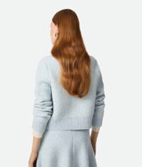Cardigan in wool boucle. Product Details - Wool boucle cardigan - Metal knot buttons closure - Regular fit - Material: 49% cotton, 41% wool, 9% polyamide, 1% elastane - Color: Bubble - Made in: Italy - Product code: 812469V4WQ04033 Size & Fit - Model is 177 cm | 5'9" and is wearing a Bottega Veneta size S
