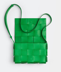 • Fringed intreccio leather cross-body bag • Single interior zipped pocket • Magnetic closure Material: 100% Lambskin • Lining: Bonded Lambskin • Color: Parakeet • Hardware: Gold finish • Height: 15 cm | 5.9" • Width: 23 cm | 9.1" • Depth: 5.5 cm | 2.2" • Strap drop: 55 cm | 21.6" Made in: italy
