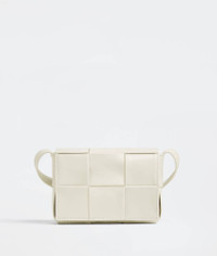 • Mini intreccio leather cross-body bag • One interior card slot • Magnetic closure Material: 100% Calfskin • Unlined • Color: White • Hardware: Silver finish • Height: 8 cm | 3.1" • Width: 12 cm | 4.7" • Depth: 4 cm | 1.6" • Strap drop: 57 cm | 22.4" Made in: italy