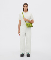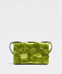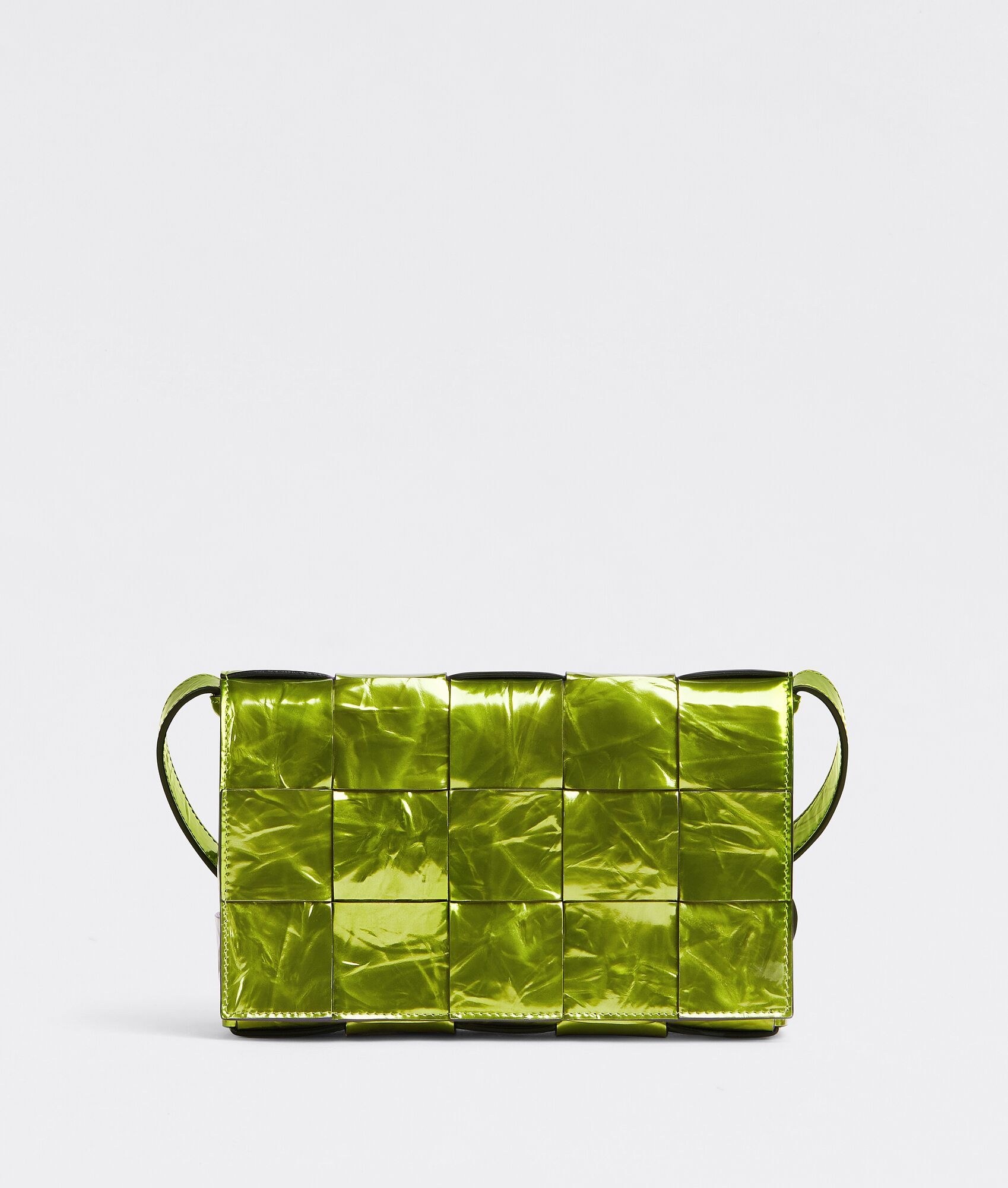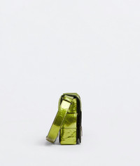 • Intreccio metalized crinkle leather cross-body bag • Single interior zip pocket • Magnetic closure Material: 100% Calfskin • Lining: Bonded suede • Color: Chlorophyll • Hardware: Silver finish • Height: 15 cm | 5.9" • Width: 33 cm | 13" • Depth: 6 cm | 2.4" • Strap drop: 55 cm | 21.6" Made in: italy