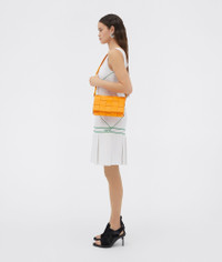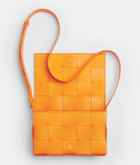 • Intreccio leather cross-body bag • Single interior zip pocket • Magnetic closure Material: 100% Lambskin • Lining: Bonded lambskin • Color: Tangerine • Hardware: Gold finish • Height: 15 cm | 5.9" • Width: 23 cm | 9" • Depth: 5.5 cm | 2.2" • Strap drop: 55 cm | 21.6" Made in: italy