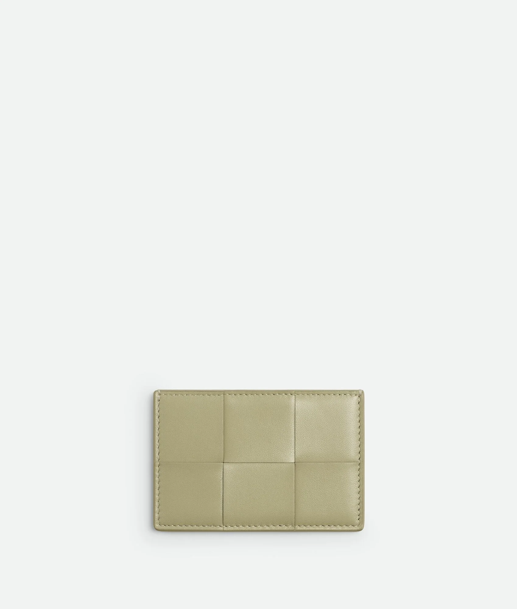 Intreccio nappa leather credit card case. Product Details - Three card slots, one central pocket - Material: lambskin - Lining: Calfskin - Color: Travertine - Hardware: Gold finish - Height: 7.6 cm | 3” - Width: 11.4 cm | 4.5” - Depth: 0.5 cm | 0.2” - Made in: Italy - Product code: 742693VCQC42916