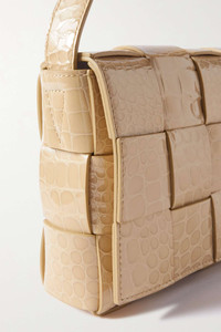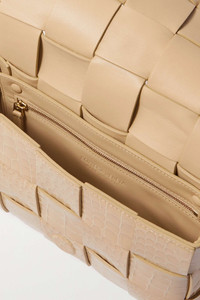 EDITORS'NOTES Bottega Veneta ensures its 'Cassette' bag always feels fresh by updating the style each season in new colorways and fabrications. Woven with the house's recognizable intrecciato weave, this version is made from croc-effect leather and opens to a smooth interior. Adjust the strap to wear yours crossbody. SIZE & FIT This item’s measurements are: - Min. Strap Length: 92cm / 36.2in - Depth: 5.5cm / 2.2in - Max. Strap Length: 112cm / 44.1in - Height: 15cm / 5.9in - Width: 23cm / 9.1in DETAILS & CARE - Beige croc-effect leather (Calf) - Magnetic-fastening front flap - Designer color: Praline - Comes with a dust bag - Weighs approximately 1.3lbs/ 0.6kg