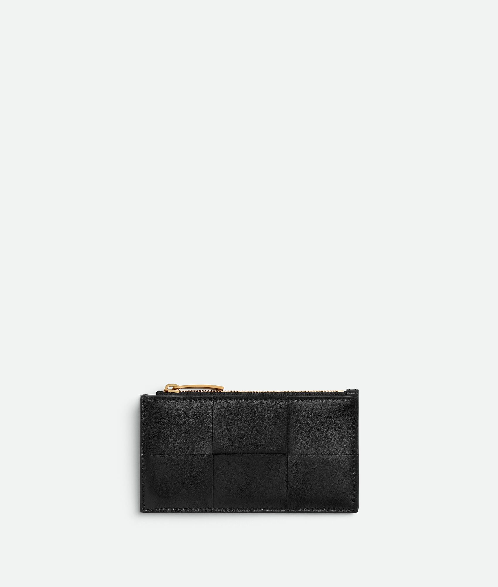 Intreccio nappa leather card case. Product Details - Five card slots, one zipped coin purse - Material: Lambskin - Lining: Calfskin - Color: Black - Hardware: Gold finish - Height: 7.5 cm | 16.9" - Width: 13 cm | 16.9" - Depth: 0.5 cm | 0.2" - Made in: Italy - Product code: 796663VCQC48425