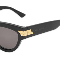 These chic black sunglasses from Bottega Veneta Eyewear are styled in a cat-eye shape for a bold contemporary look. Constructed with study acetate frames, they’re fitted with grey tinted lenses for optimum UV protection, then finished off with gold accents at the temples for a luxe touch. - Acetate Construction - Tinted Lenses - UV Protection
