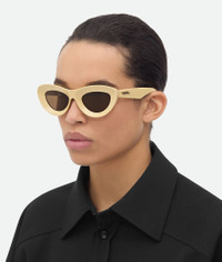 Cat eye sunglasses in injected acetate. Product Details - Lenses made from polyamide with 39% bio-based material - BV1325S 002 - Material: Injected acetate - Color: Yellow/Brown - Made in: Italy - Product code: 810166VBL807410