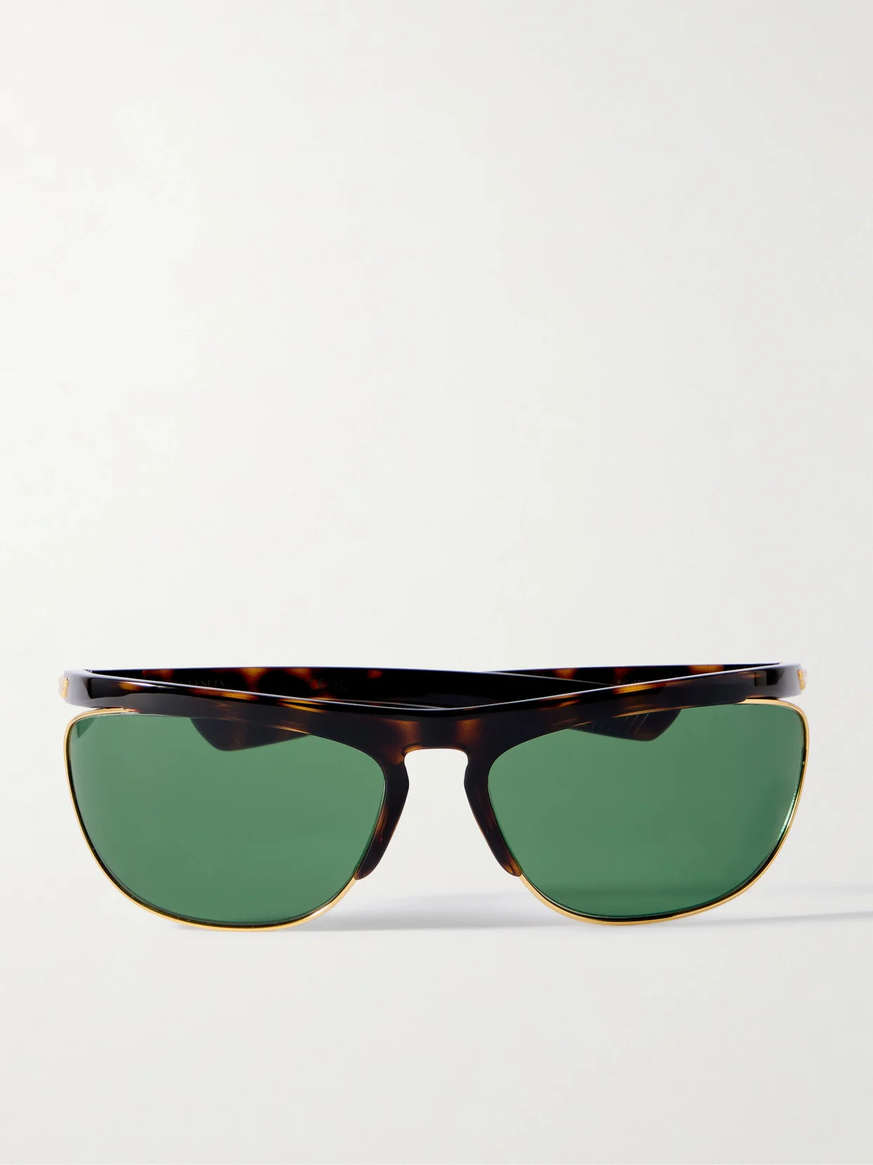 Bottega Veneta Eyewear's sunglasses are an elevated take on wrap-around styles. They're made from tortoiseshell acetate and have aviator-inspired frames outlined with gold-tone metal.