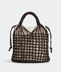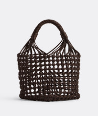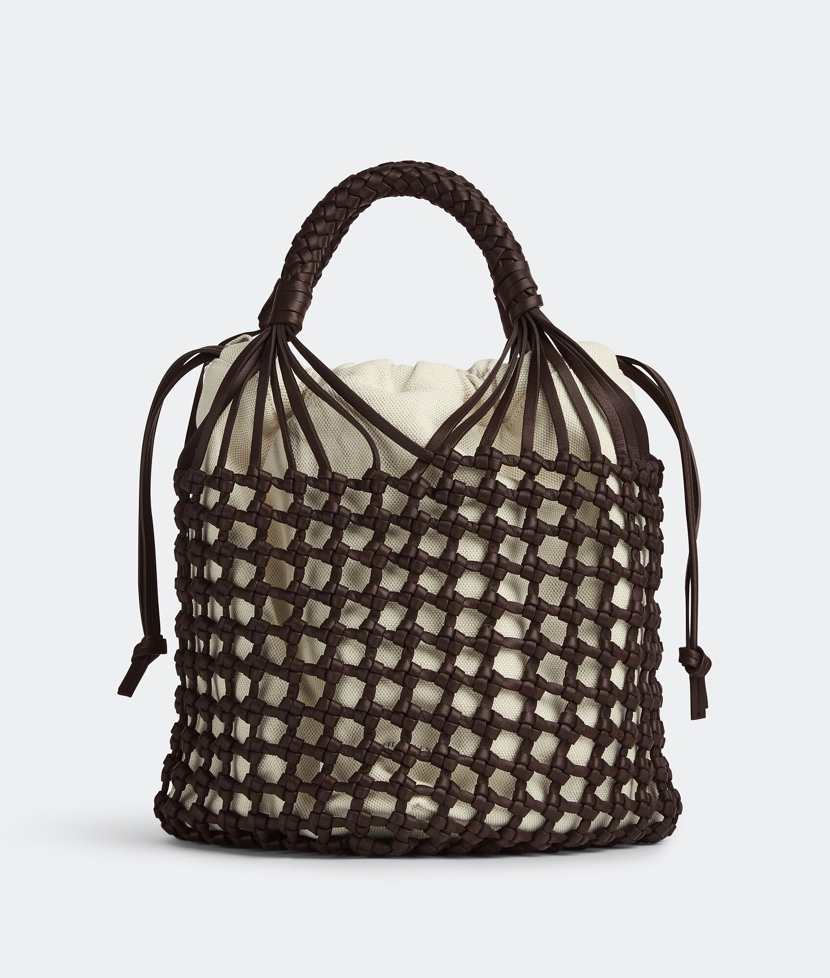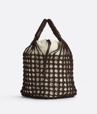 Product details • Hand-knotted intreccio leather tote bag • Removable interior canvas drawstring pouch Material: 100% Lambskin • Unlined • Color: Fondant/Natural • Hardware: Gold finish • Height: 20 cm | 7.8" • Width: 26 cm | 10.2" • Depth: 26 cm | 10.2" • Handle drop: 17 cm | 6.7" Made in: Italy