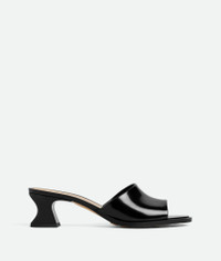 Calfskin leather mule with sculptural heel. Product details • Leather mule Material: 100% Calfskin • Lining: Lambskin • Color: Black • Rubber-injected leather outsole • Heel: 5 cm | 2” Made in: Italy