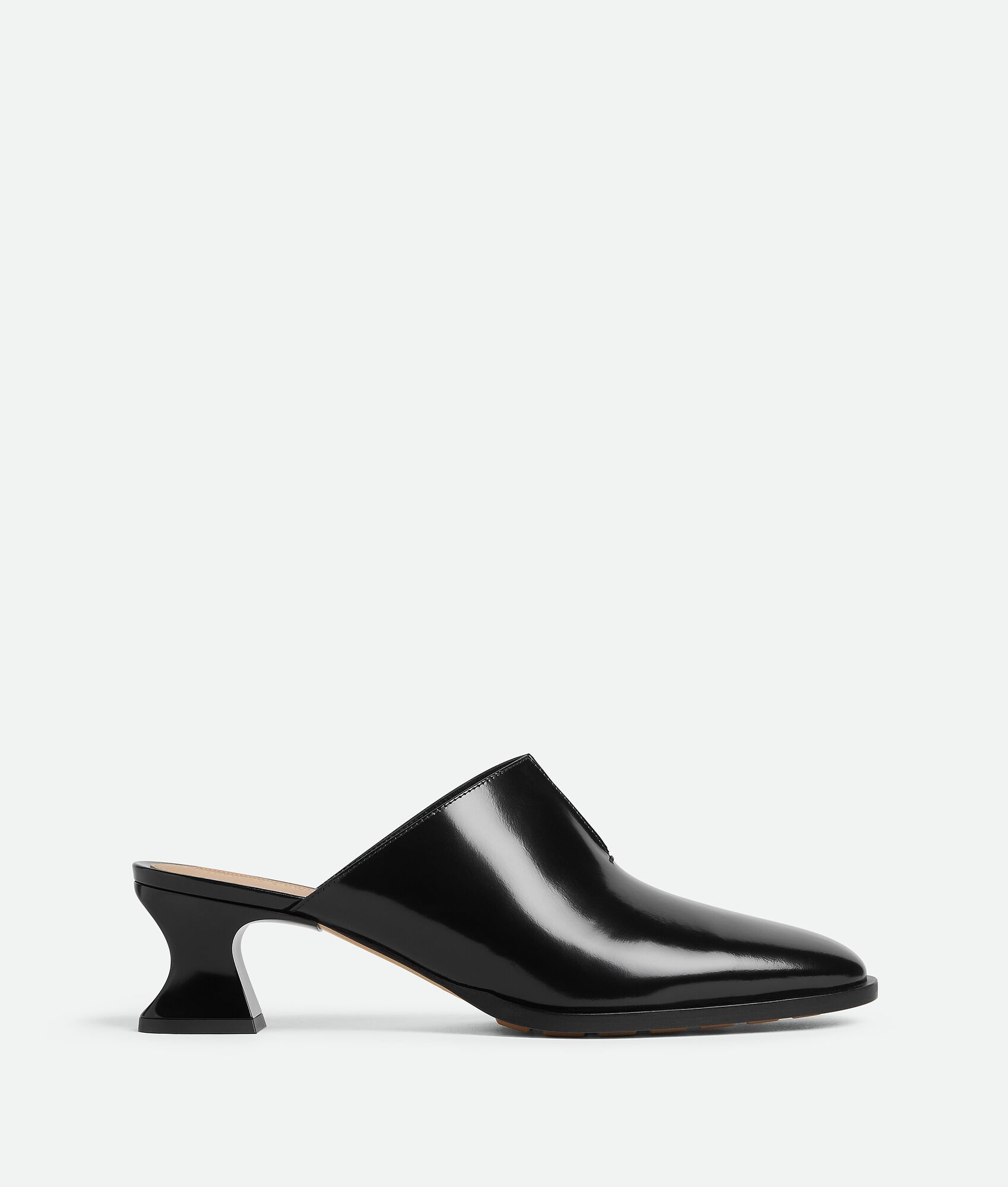 Calfskin leather mule pump with sculptural heel. Product Details - Leather mule pump - Material: Calfskin - Lining: Lambskin - Color: Black - Rubber-injected leather outsole - Heel: 5 cm | 2” - Made in: Italy - Product code: 787035V4BO01000