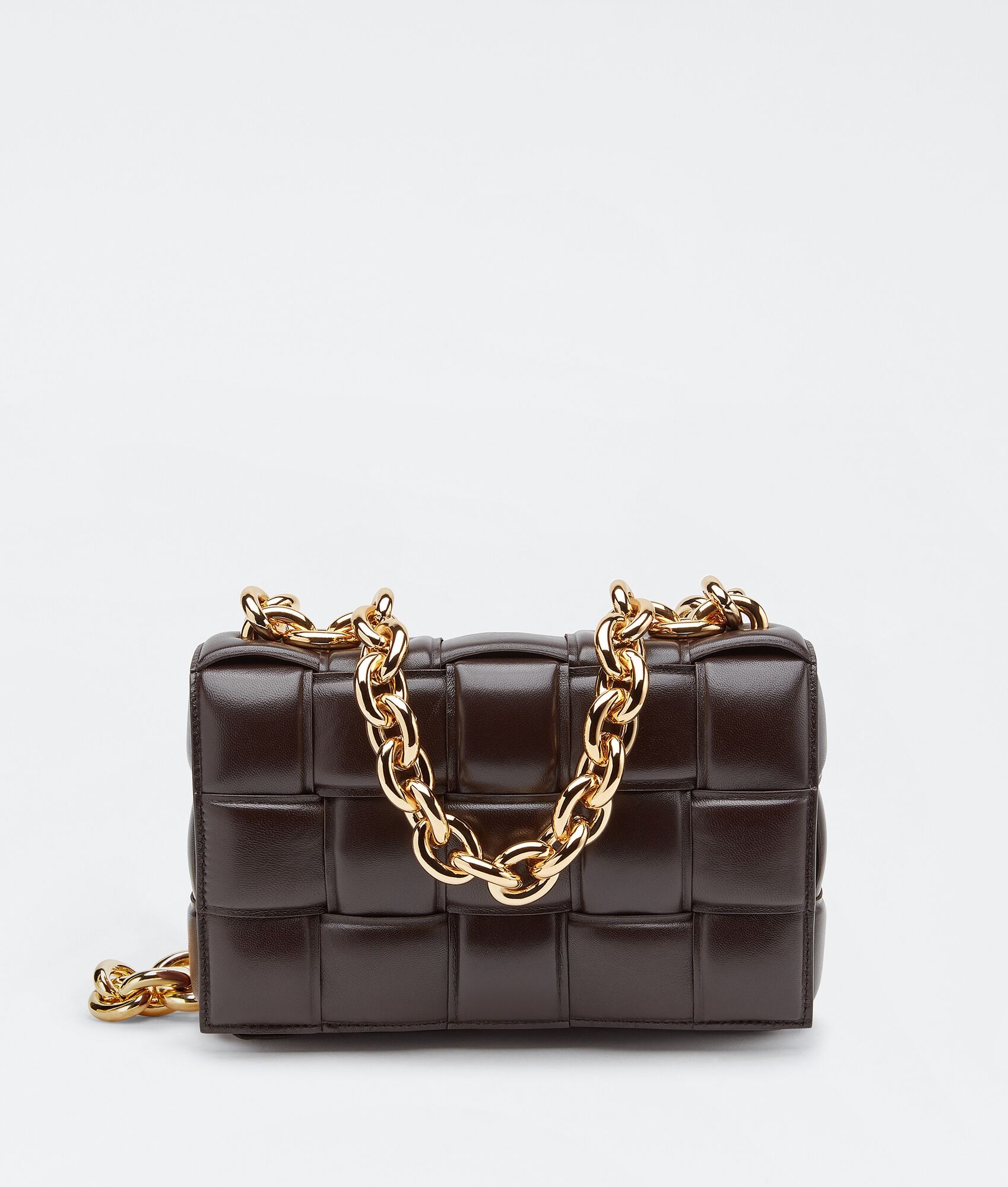 The Chain Cassette embodies the codes of Bottega Veneta, the Intrecciato, the quality and the colours. Elevated with a padded interpretation, handwoven in Italy with the finest Nappa lambskin. • Padded intreccio leather crossbody bag • Single interior zipped pocket • Metal closure Material: 100% Lambskin • Lining: bonded lambskin • Color: Fondant • Hardware: Gold finish • Height: 18 cm | 7.1" • Width: 26 cm | 10.2" • Depth: 8 cm | 3.1" • Handle drop: 13 cm | 5.1" • Strap drop: 50 cm | 19.7" Made in: italy