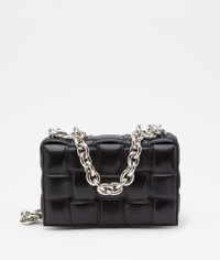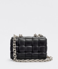 The Chain Cassette embodies the codes of Bottega Veneta, the Intrecciato, the quality and the colours. Elevated with a padded interpretation, handwoven in Italy with the finest Nappa lambskin. • Padded intreccio leather crossbody bag • Single interior zipped pocket • Metal closure Material: 100% Lambskin • Lining: bonded lambskin • Color: Black • Hardware: Silver finish • Height: 18 cm | 7.1" • Width: 26 cm | 10.2" • Depth: 8 cm | 3.1" • Handle drop: 13 cm | 5.1" • Strap drop: 50 cm | 19.7" Made in: italy