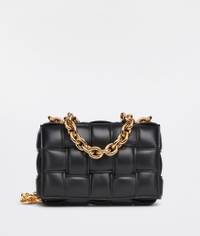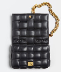 • Padded Intreccio leather crossbody bag • One interior zipped pocket • Metal closure Material: 100% Lambskin • Lining: Lambskin bonded Intreccio • Color: Black • Hardware: Gold finish • Height: 18 cm | 7.1" • Width: 26 cm | 10.2" • Depth: 8 cm | 3.1" • Handle drop: 13 cm | 5.1" • Strap drop: 50 cm | 19.7" Made in: Italy