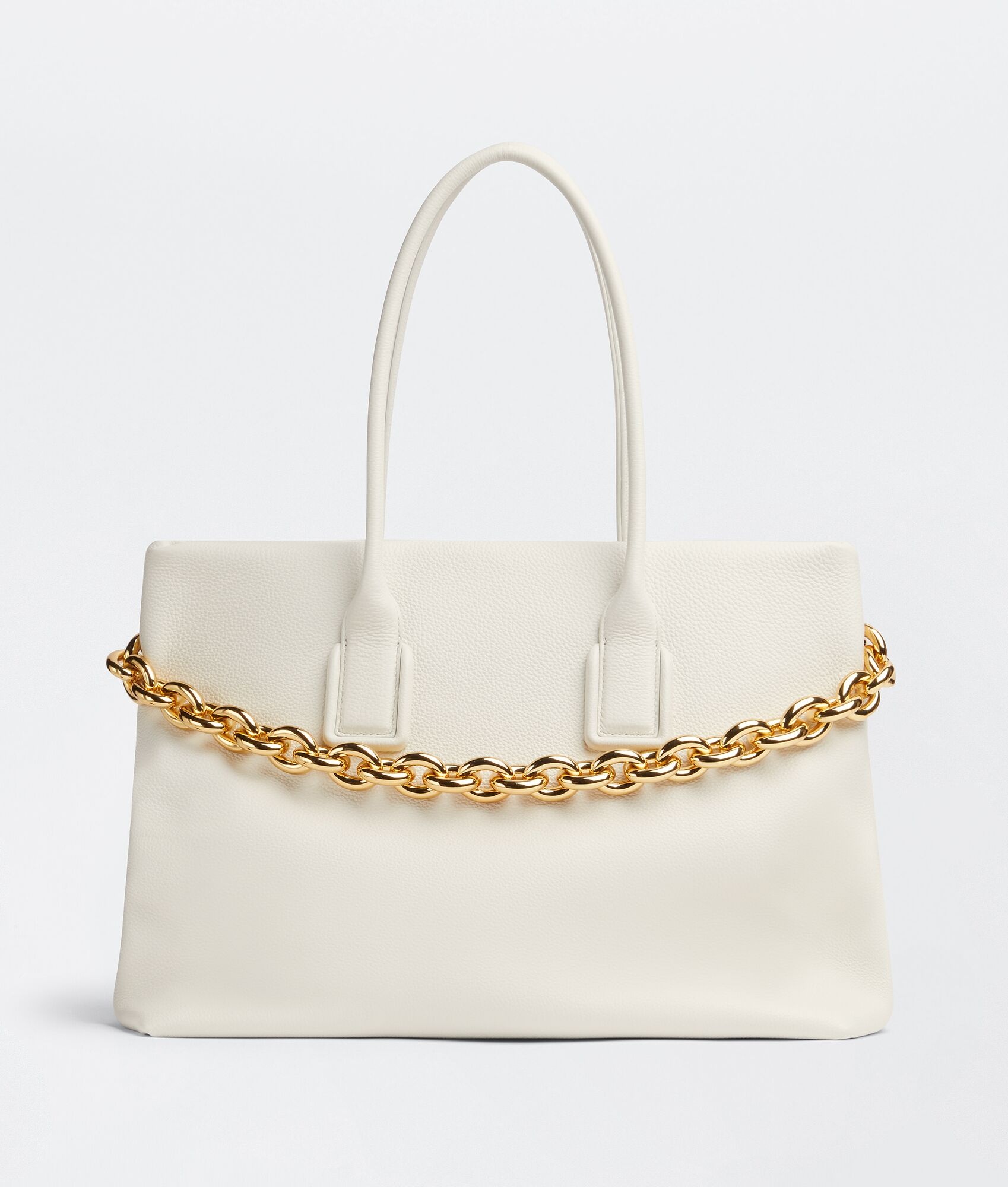 • Grained leather tote bag • One interior zipped pocket • Snap and magnetic closure Material: 100% Calfskin • Lining: Lambskin • Color: White • Hardware: Gold finish • Height: 31,5 cm • Width: 41 cm • Depth: 18 cm • Handle drop: 20 cm Made in: italy