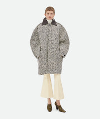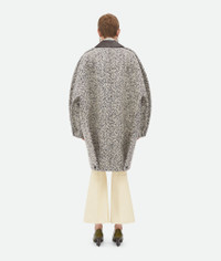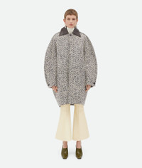 Coat in wool boucle chevron with leather collar. Product Details - Wool boucle chevron coat - Leather collar - Button closure - Fully lined - Relaxed fit - Material: 64% wool, 15% mohair, 9% polyamide, 6% cotton, 6% acrylic - Color: Charcoal/Beige - Made in: Italy - Product code: 810396V4M209306 Size & Fit - Model is 180 cm | 5'11" and is wearing a Bottega Veneta size S