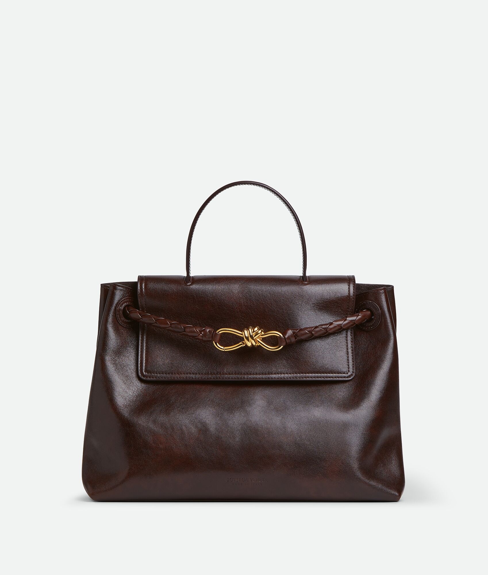 Product Details - Weathered leather top-handle bag with two-way flap - Sliding shoulder-carry strap - Adjustable and detachable cross-body strap - Compartmented interior with one zipped pocket - Hook closure - Lining: Bonded suede - Color: Dark Mahogany - Hardware: Brass finish - Height: 26 cm | 10.2" - Width: 34 cm | 13.4" - Depth: 15 cm | 5.9" - Handle drop: 11 cm | 4.3" - Strap drop: 55 cm | 21.7" - Made in: Italy - Product code: 817231V5RG02775