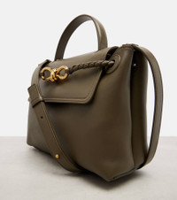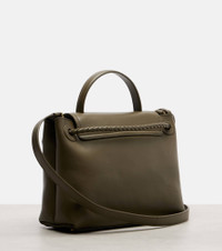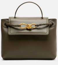 Carry a piece of Bottega Veneta history with the Ciao Ciao shoulder bag. Crafted from leather, this accessory features the brand's iconic gold-toned Knot motif, top handle, adjustable shoulder strap, and an internal compartment. Product Details - Material: leather - Lining: leather - Made in Italy - Designer color name: Cypress-Muse Brass - Item color: green - Adjustable shoulder strap, Top handle, Detachable top handle - Internal details: two internal compartments, internal zipped pocket - Closure: hook fastening - Hardware color: gold - Includes: dust bag - Item number: P01054777 Size & Fit - Height 19cm-7.5" - Width 25cm-10" - Depth 11cm-4.5" - Length of handles 22cm-8.5" - Length of handle 22cm-8.5" - Adjustable shoulder strap - Length shoulder strap 109cm-43" - Max. length shoulder strap 122cm-48"