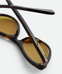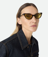 Cat eye sunglasses in recycled acetate with signature gold-finished ribbon detailing. Product Details - Cat eye sunglasses made with Eastman Acetate Renew, an acetate with 27% recycled content - Lenses made from polyamide with 39% bio-based content - Gold-finished ribbon detail at the temples - BV1414S 002 - Color: Havana/Brown - Made in: Italy - Product code: 845796V2Q302819 Material - Material: Recycled acetate Size & Fit - Lens width: 56 mm | 2.2" - Bridge length: 17 mm | 0.7" - Temple length: 140 mm | 5.5"