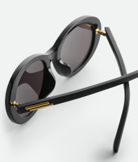 Oval sunglasses in recycled acetate with signature gold-finished ribbon detailing. Product Details - Oval sunglasses made with Eastman Acetate Renew, an acetate with 27% recycled content - Lenses made from polyamide with 39% bio-based content - Alternative fit available - Gold-finished ribbon detail at the temples - BV1415SK 001 - Color: Black/Gray - Made in: Italy - Product code: 845797V2Q301049 Material - Material: Recycled acetate Size & Fit - Lens width: 54 mm | 2.1" - Bridge length: 20 mm | 0.8" - Temple length: 145 mm | 5.7"