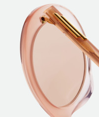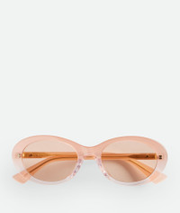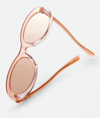 Oval sunglasses in recycled acetate with signature gold-finished ribbon detailing. Product Details - Oval sunglasses made with Eastman Acetate Renew, an acetate with 27% recycled content - Lenses made from polyamide with 39% bio-based content - Alternative fit available - Gold-finished ribbon detail at the temples - BV1415SK 004 - Color: Pink - Made in: Italy - Product code: 845797V2Q305126 Material - Material: Recycled acetate Size & Fit - Lens width: 54 mm | 2.1" - Bridge length: 20 mm | 0.8" - Temple length: 145 mm | 5.7"