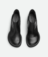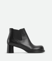 Chelsea ankle boot with kitten heel and voluminous toe shape in calfskin leather. Product Details - Leather kitten heel Chelsea ankle boot - Material: Calfskin - Lining: Calfskin - Color: Black - Leather outsole - Heel: 5 cm | 2” - Made in: Italy - Product code: 816511V4BH01000