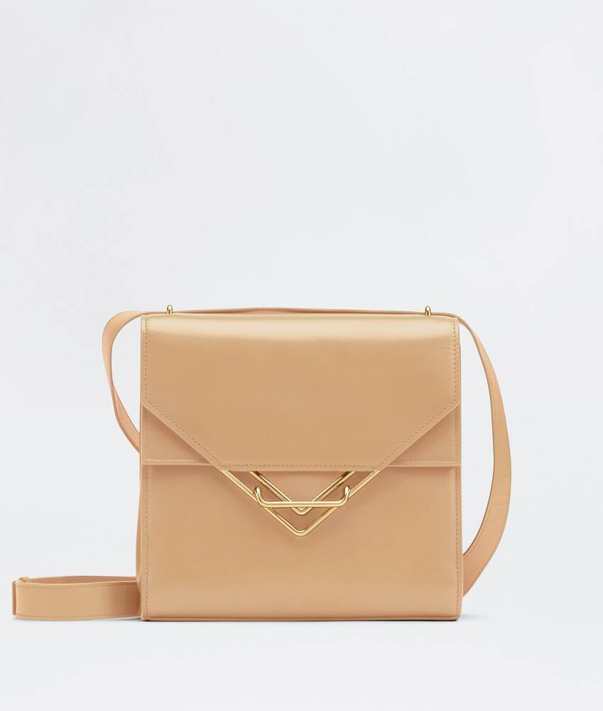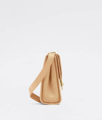 • Leather shoulder bag • One front flap pocket, one interior zipped pocket • Metal closure Material: 50% Calfskin, 50% Lambskin • Lining: Lambskin • Color: Almond • Hardware: Gold finish • Height: 21 cm • Width: 23 cm • Depth: 9 cm • Strap drop: 70 cm Made in: italy