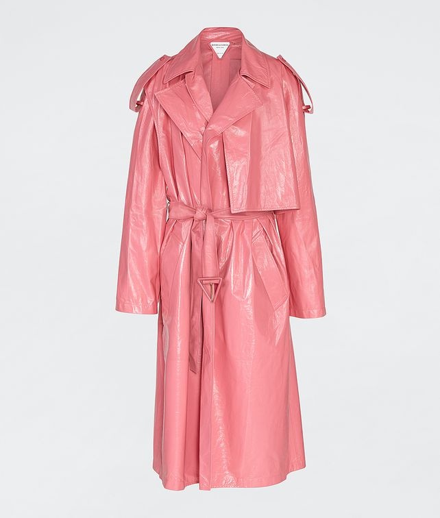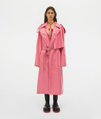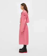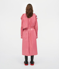 • Shiny leather trench coat • Belted waist with signature triangular buckle • Exaggerated storm flap • Button fastening shoulder epaulettes and cuff tabs • Pockets at sides • Unlined • Designed for an oversized fit DETAILS Composition: 100% Lambskin Color: Candy Made in Italy