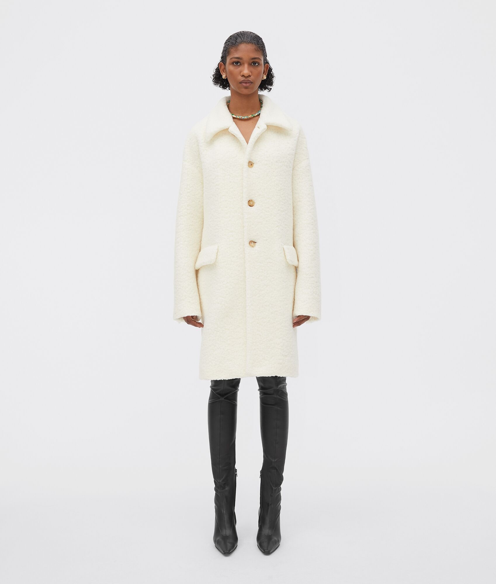 • Wool and mohair bouclé coat • Button closure • Regular fit Material: 78% Wool, 15% Mohair, 7% Polyamide • Color: White Made in: Italy