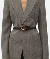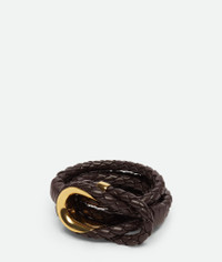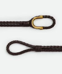 Intrecciato double tubular leather belt. Product details • Intrecciato double tubular leather belt • Curved buckle closure Material: 100% Lambskin • Lining: Unlined • Color: Fondant • Hardware: Muse brass finish • Height: 1.8 cm | 0.7" • Depth: 0.5 cm | 0.2" Made in: Italy